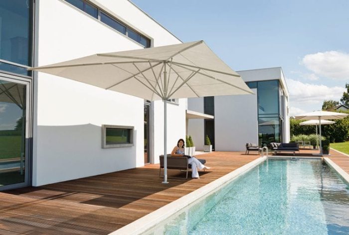 Our large parasols are designed to protect you from the harmful UV (ultraviolet) rays from the sun, strong winds and heavy rain. Whether you prefer manual or electric operation, you can create shade wherever you need it. The Paraflex side-supported umbrellas meet the needs of homeowners and businesses. There’s no need for a heavy base, and you can adjust your parasol up to 180 degrees with ease to match the angle of the sun (or more when mounted on the pole or a corner). We also supply centre pole umbrellas with fixed or movable bases, as well as cantilever parasols which are ideal for shops, restaurants, pubs, cafes, holiday homes and many residential settings.