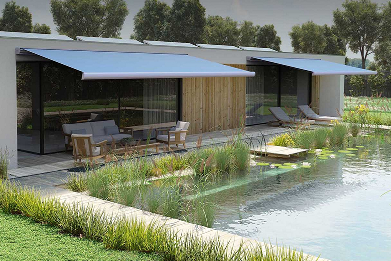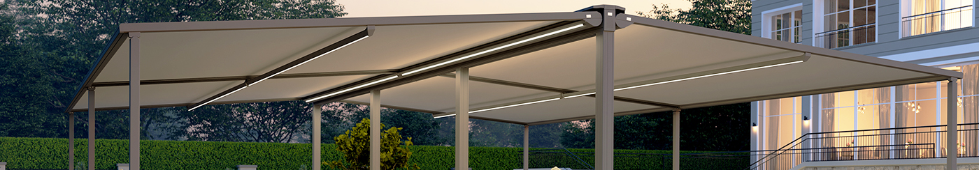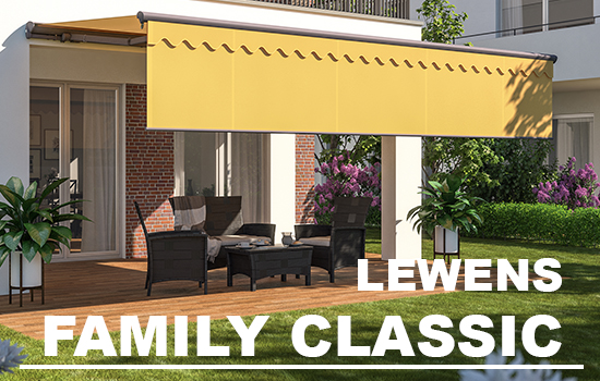 Pergola awnings are a popular way to create more useable space for outdoor living. The sturdy structure is comprised of awning casing, guide tracks and sturdy free-standing uprights, helping to protect the sunshade from wind. Available in a range of design options, the Lewens pergolas combine reliability with convenient operation.
