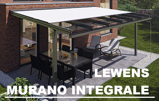 The Murano series of glass roofs are available as a simple glass roof or with an integrated sunshade. Optional extras include sliding glass panels and permanent glazing, allowing the Murano glass roof system to range from an airy patio canopy to a fully glazed conservatory.