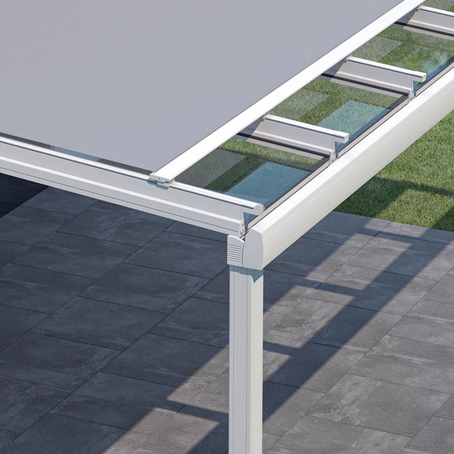 The Murano Integrale combines the clarity and shelter of a glass roof with the functionality of a built-in awning, offering a refined solution for managing sunlight, temperature, and rain. Its integrated awning, housed within the wall profile, allows for smooth transitions between open skies and shaded comfort. This model is available in a variety of configurations, including options with posts aligned with the front profile or set inward for a more architectural look. Even in its generous dimensions, the Murano Integrale maintains a sleek, cohesive design—delivering both aesthetic appeal and practical versatility.