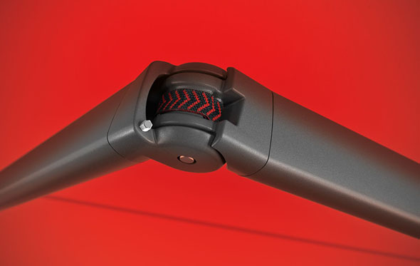 The Markilux 6000 is a cassette awning with a new folding element in the arm hinge, aptly named the ‘bionic hinge’. This is the latest highlight from the Markilux technical team, who merit themselves on innovative prowess. This completely new technology, of which has never been used before this product, ensures the friction-free, noiseless bending of the folding arms every time.