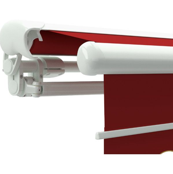 This electric operated awning, with a semi cassette design, is of the very highest quality with a robust and complex design of the arms and the torque bar supporting mechanism.
