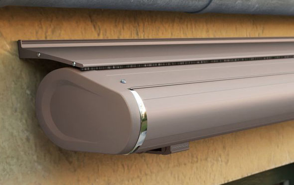 Attractive, rounded end caps complete the overall appearance of this slim cassette awning.
