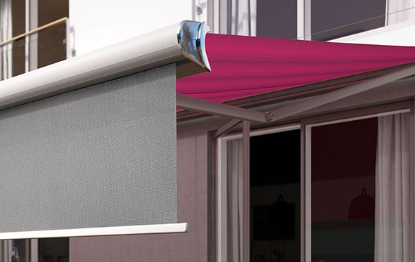 Its perfectly uniform appearance is achieved with an aluminium cover profile and cassette in matching colours combined with the slim cassette awning in a stylish design.