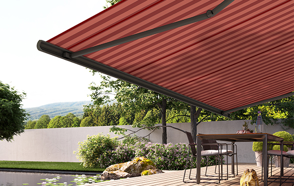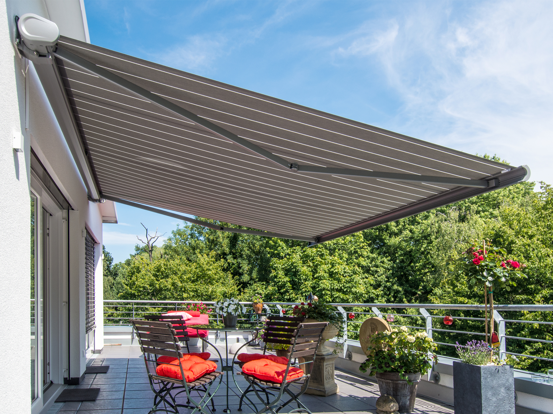 The extremely sturdy awning construction makes it possible to shade even very large areas safely.