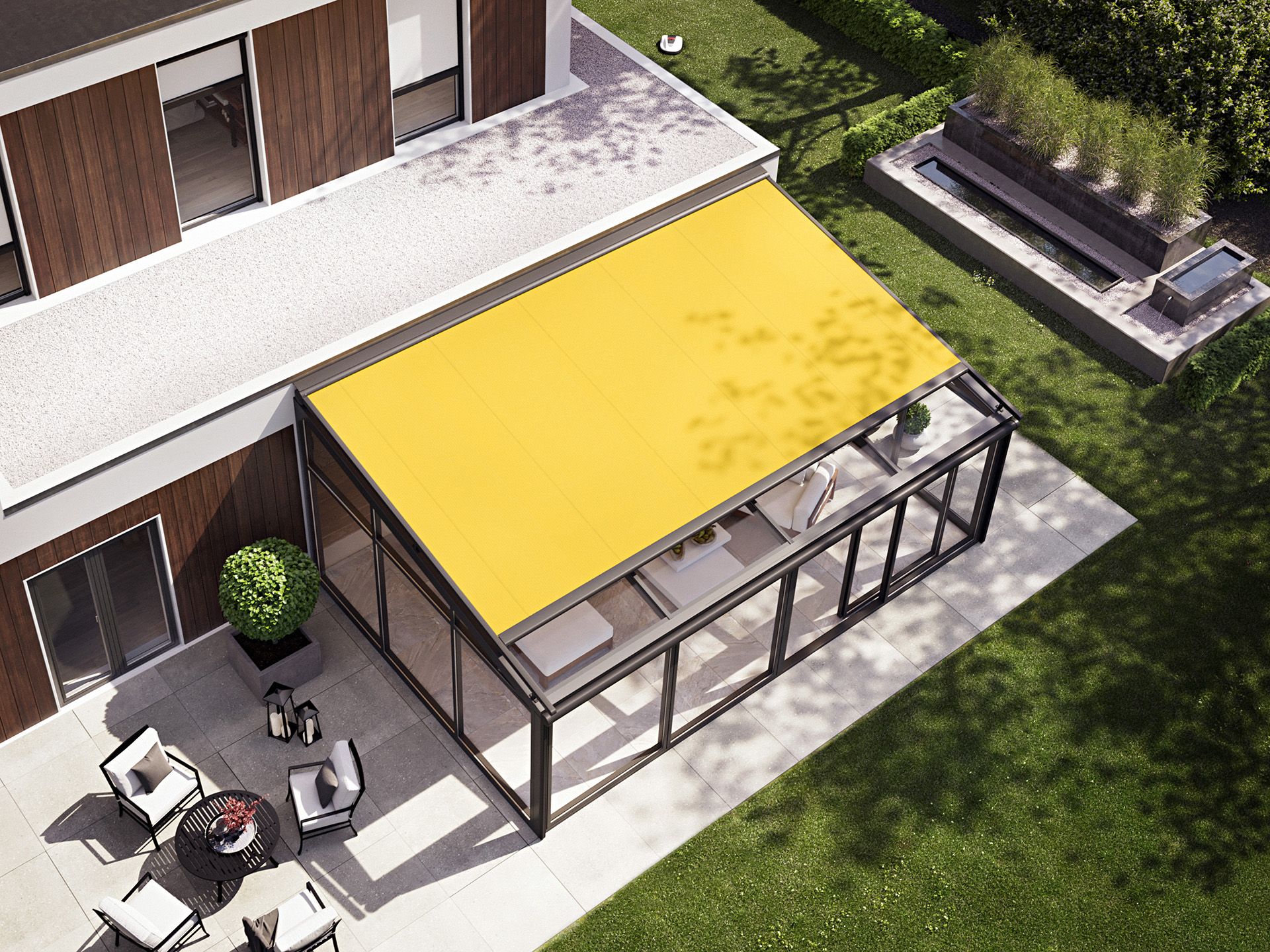 Transform your conservatory or glass canopy into a haven of comfort and style with a premium markilux above-glass awning.