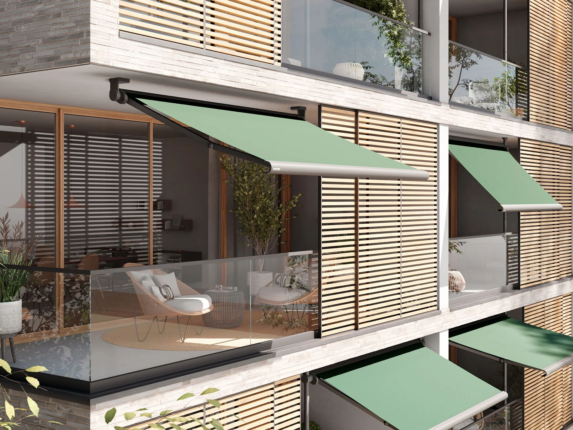 When retracted, the awning is fully encased within the cassette which provides an elegant appearance with a high level of protection for the awning material.
