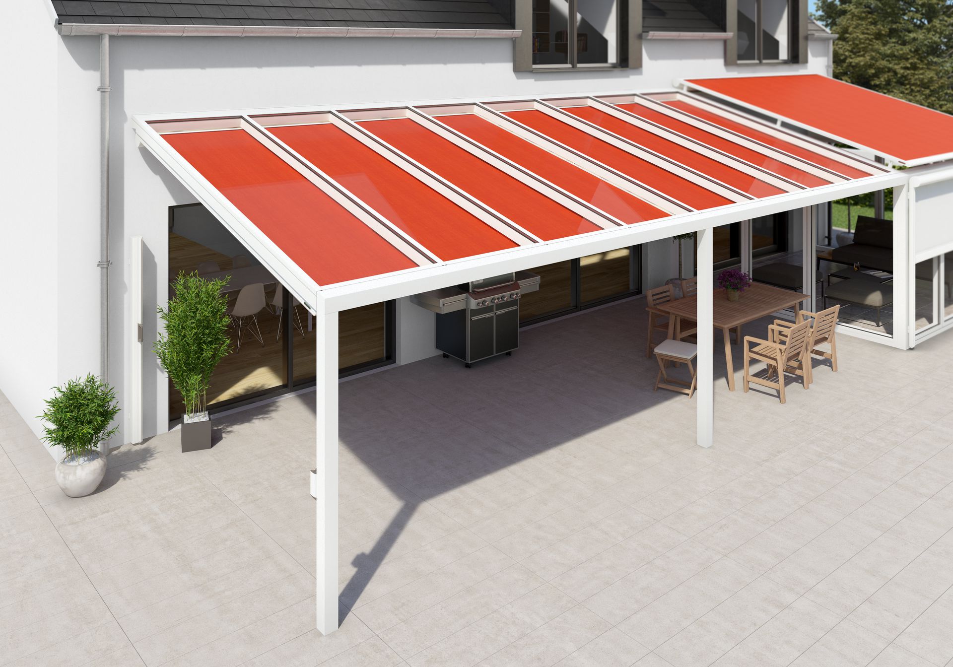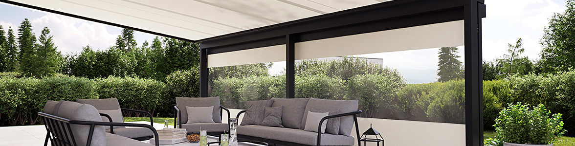 The sturdy, angular full cassette underglass awning with a wide range of lighting options to create your feel-good corner to relax in.