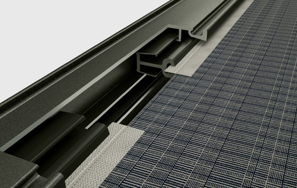 One of the many sophisticated features markilux offers: lateral cover guidance with no gap between the awning cover and guide track.