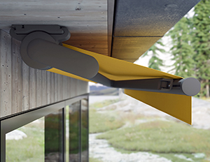 The awning is described as ‘small, delicate and elegant’, reflecting the slender nature of the product when fully closed.
