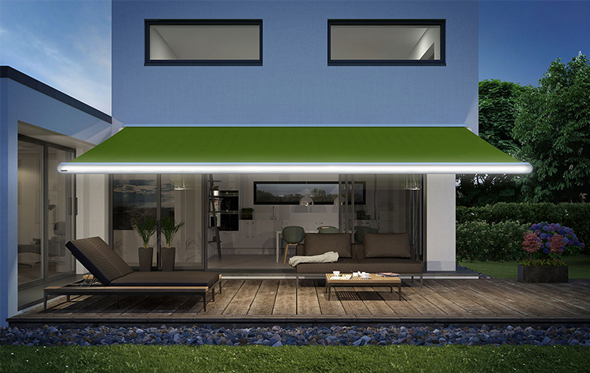 The front panel, made of aluminium, is available in all the Markilux Lounge and standard colours. As an option, the dimmable LED ambient lighting, set behind a coloured acrylic glass front panel, will set a more playful tone.
