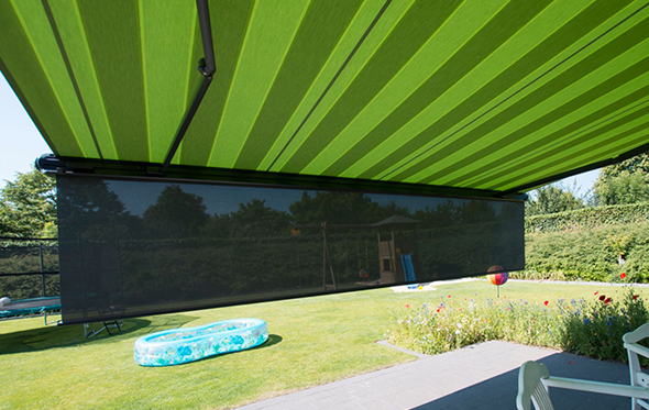 Being electrically operated is ideal for any larger size retractable awning as it means safety devices can be added such as a wind sensor to ensure the fabric cover retracts in higher wind speed to avoid any damage.