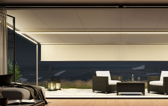 LED-Line Light for reading or informal get-togethers, optionally in the guide tracks and/or in the cover support tube, turns your night into day.