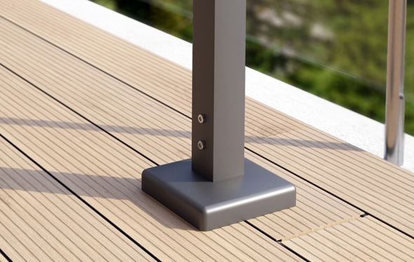 Square support / baseplate covers meets the demand for clear, angular shapes and a clean finish at the base of the front support posts