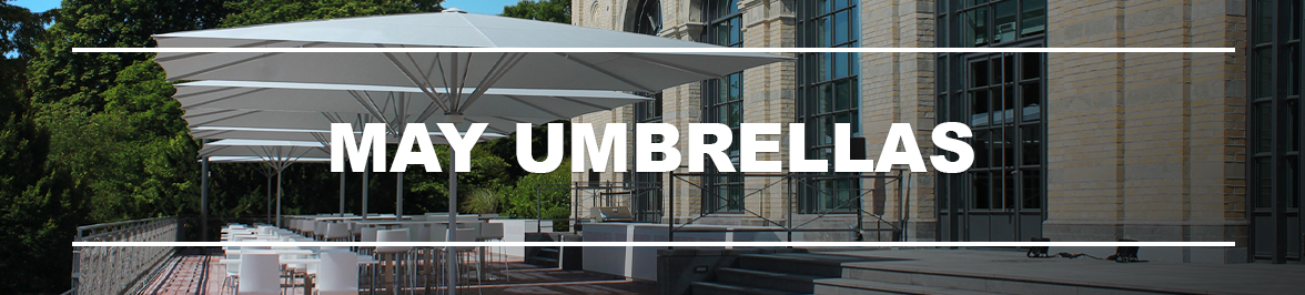 For a long time, May have been a leading trade name for premium parasols. From the start, the company has resolutely pursued a policy of transferring creative concepts into technical solutions. The result is multi-purpose sunshades, used and proven in all kinds of weather, day by day, worldwide, making May Umbrellas the obvious choice. With a range of great designs, all available in eye catching colour schemes, May are a great choice for anyone for a commercial or domestic parasol.