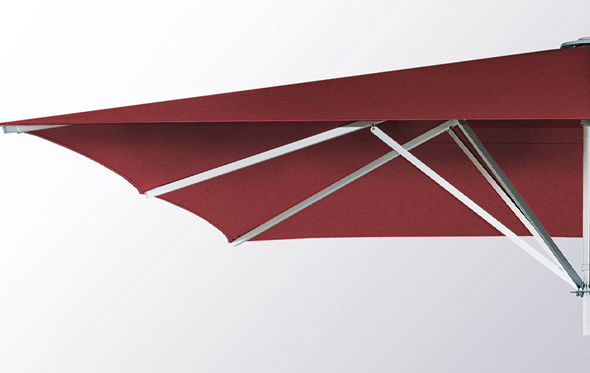 Operating the sunshade The Albatros is a large opening umbrella capable of creating a space of up to 78 m², and is opened and closed with a smooth-running, removable stainless steel crank. The reliable drive-system with accurate integrated bevel gears guarantees effortless handling, even after years of usage. Electric drive on request.