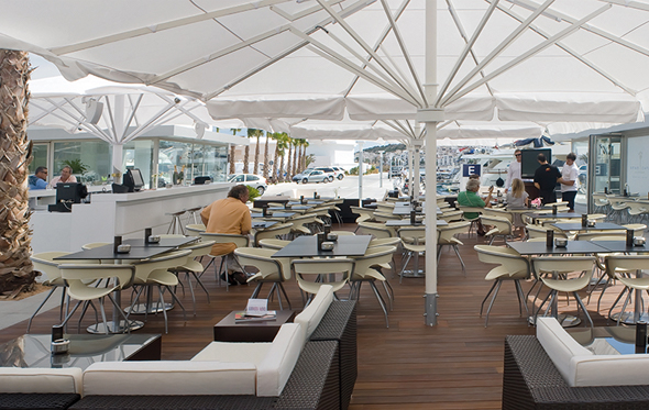 Especially designed to meet the requirements of outdoor catering, this sunshade concept provides an exclusive atmosphere in large areas. Its clear design is unique and lends its very own unmistakable charm to any outside area. The Albatros umbrella stand out by virtue of their maintenance free drive and particularly robust construction. The largest umbrella that May make, the Albatros is designed specifically for service industries and commercial use, with it’s large size allowing for maximum coverage and minimal obstructive poles. They are available with lights and heaters, allowing you and your customers or guests to enjoy your outdoor space further into the evening and even during the colder months. This makes it an excellent solution when planning to optimise your outdoor space.