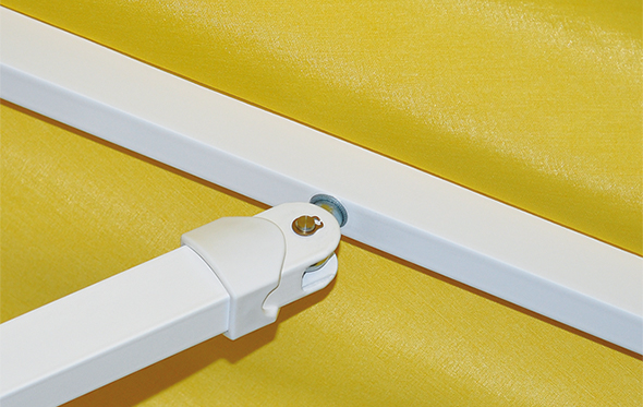 The poles of our sunshades are all made of high-quality alloyed, extruded aluminium profiles. Frame surfaces are powder-coated, highly impact proof and available in white RAL 9010. Special colours are available on request. All parts are completely maintenance free.
