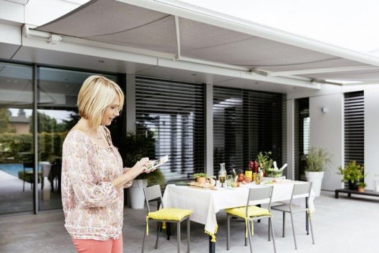 Motorised pergolas and awnings also significantly increase comfort. For example, if you are enjoying a night with your loved ones, simply say ‘evening scene’ to your smart speaker, and the patio awning /pergola opens to insulate from cooler evening temperatures, the lights switch on and the music starts. These scenes can also be activated with a tap on your phone, which helps you when a sudden gust of wind comes along and you might find yourself struggling to retract your awning/pergola.