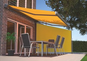 Retractable Side Blinds – A manual fabric blind which pulls out from a cassette fixed on the wall or strong post to clip into another post or bracket when extended. Available in various widths and heights and over 200 fabric selections this is a great way to prevent annoying breezes in any patio or garden area