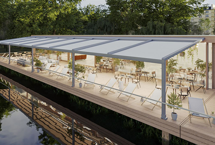 To create a covered area with protection from rain and a light cooling breeze and as a retractable solution we look towards the Retractable Fabric Pergola.