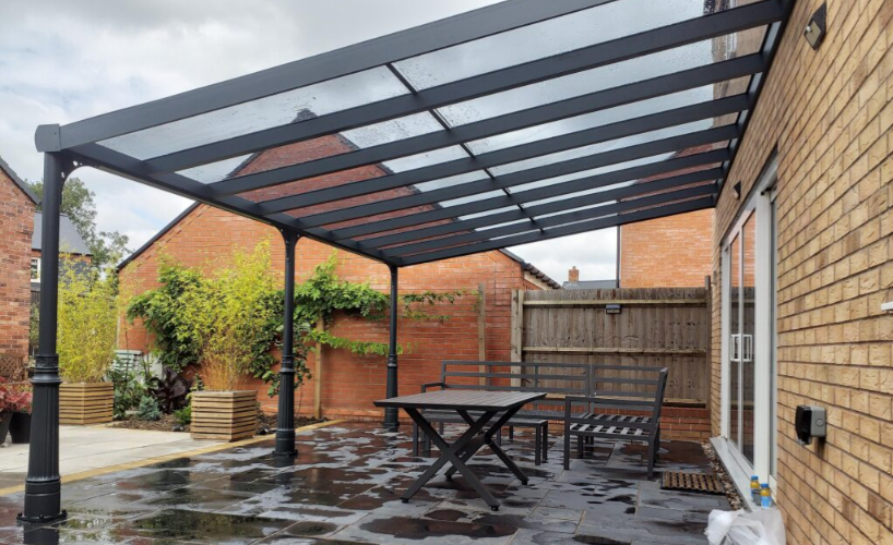 Our wide range of glass structures give you total protection from rain above and depending on the side infills specified will also protect you from strong winds too.