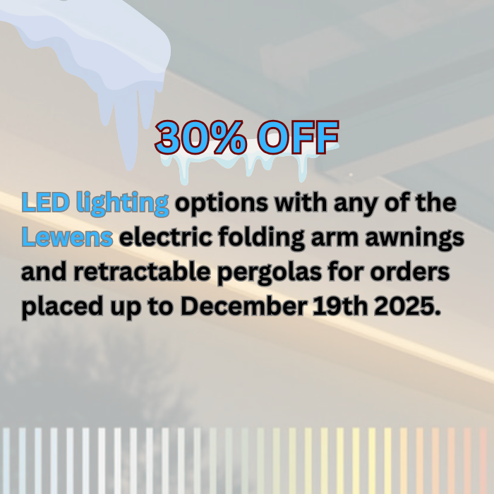 Our Winter promotion includes a massive 30% off the lighting options when purchased with any of the Weinor or Lewens retractable awnings or pergola systems.