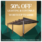 LED lighting is a very popular option now as most awnings and pergolas can be used for lighting outside areas without even using the fabric canopy, making them large outdoor light units in their own right. The LED lights are super low cost to run and can be controlled with a Somfy smart app to offer simple smartphone control but also you can create timers and scenarios and even add a simple Somfy sensor outside to switch the flights on with movement.