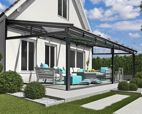 This outdoor living product is usually an extension for an existing room and therefore wall mounted for a seamless transition and is made to measure in every dimension for the perfect fit.