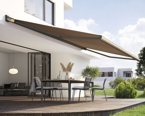 We are using the word ‘luxury’ in a world far too used to seeing ‘cheap’ as standard returned results in Google searches, regardless of the search. We use luxury to describe larger sized, designer folding arm awnings with high specifications and electric operation as standard and also with far more options available and a larger emphasis on the visual aspects of the cassette shape.