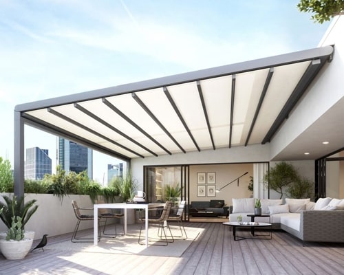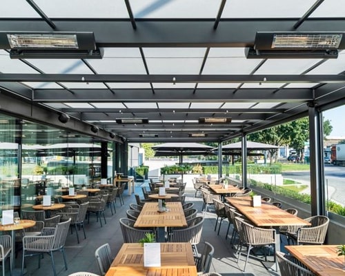 All the retractable pergola systems are suitable for commercial applications, but we find most commercial applications are obviously larger and the larger the system is the more cost effective the capital outlay becomes, and the square metre cost reduces.