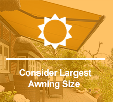 Consider the size requirements carefully and always try for the largest awning size possible when specifying for people sitting underneath. For shading a room or window the pitch may need to be greater than envisaged and a further projection required depending on the direction the room faces in relation to the sun. Also, for covering people sitting underneath the projection may need to be considerable and therefore the height at the back may need to be higher than envisaged and not always possible with a single storey building/extension without additional bracketry.