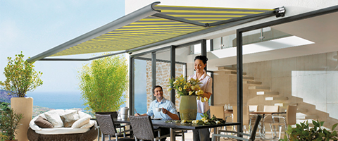 A lot of people often require quite a large projection for sun protection but don’t have the same width available, at which point you can look at the retractable awnings with crossover arms (stretch awnings) which will project further than their width. The retractable fabric pergolas by Weinor and Markilux also can achieve this as they don’t use hinged arms in these systems, and will project out to a maximum of 6 metres!