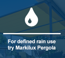 For an awning that will be used in the rain, certain self supported awning models are definitely stronger and more suited. A key aspect is to have a minimum 14 degree pitch on the fabric cover (and ideally 20 degrees) which inevitably can mean quite a high fixing position for the awning cassette at the rear. This can be an issue with single storey buildings/extensions.Heavy bursts of rain may cause an issue with any fabric cover canopy, even with a reasonably steep pitch, and obviously stormy weather can also bring sudden high winds, which are a greater issue to self supporting fabric awnings. We do offer an awning with a manual winding mechanism to adjust the pitch as required on the fly.For defined rain use it might be better to look at the supported systems such as the Markilux Pergola or a fixed glass or polycarbonate roof canopy with an additional retractable fabric awning for sun protection when required.For more information on what systems are suitable for different weather conditions, click here.
