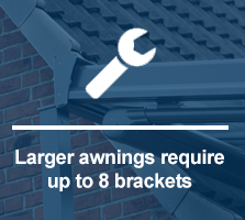 Are there any issues with where the wall brackets are to be fitted? Bear in mind some awnings are only manufactured with end fixed brackets and others have some flexibility in their positioning. Larger awnings will require more than two brackets and sometimes up to eight brackets on some 14 metre wide awnings. These brackets may not be able to be positioned where there is an existing door or window aperture so check before committing. There is always a way round the problem however, with additional and extended brackets going horizontally or vertically.