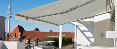 Recently we have also taken on the impressive Erhardt Markisen range, who are a designer brand from Germany which specialise in high specification awnings and glass roof systems.