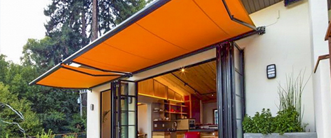 Single storey extensions fitted with bi folding doors opening outwards can also present an issue with the door leaves being an obstruction to the awning when extending or retracting. In some cases you can use a self supporting steel or aluminium goal post structure to enable an awning to be positioned in front of but not directly fixed to the building. Look at the Markilux Syncra frame systems for ideas on this.