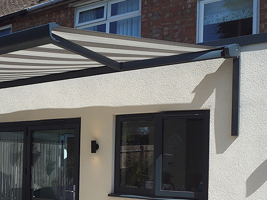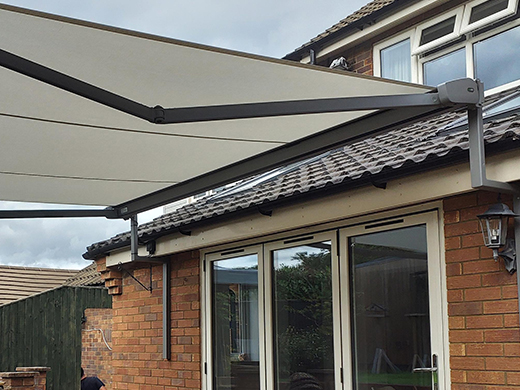 The forces and weight of any awning often need to be spread down the supporting wall of a building using ‘spreader brackets’ and often when fixing points are few and far between we often use gutter or sign brackets to obtain the necessary fixing position elsewhere and then connect with the awning cassette.