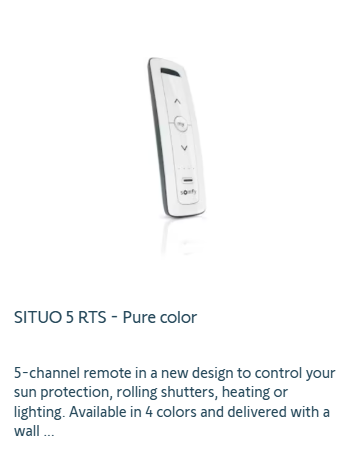 Most high quality blinds, awnings, pergolas and associated sensors to control these products use Somfy, mainly because they are super reliable, cost effective and offer longevity and intuitive programming.. Constant innovation to integrate control seamlessly into people’s lives is also a driving factor for success.