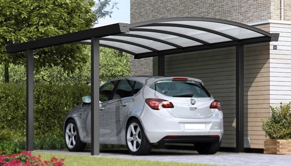 Carports offer unobtrusive driveway cover with the use of a simple canopy and standing support structure. Either free standing or fixed against the naturally strong wall of a house or garage, each Carport that we supply is further reinforced thanks to its structurally simple yet effective supports. Each supporting column offers further reinforcement to the canopy roof. This ensures full protection is offered at all times.