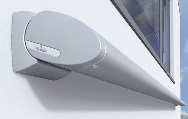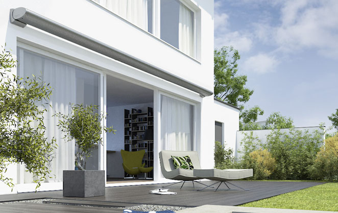 It has an extremely flat design which sits elegantly when fixed against a wall offering effective housing to the most advanced and sophisticated Weinor patio awning technology.