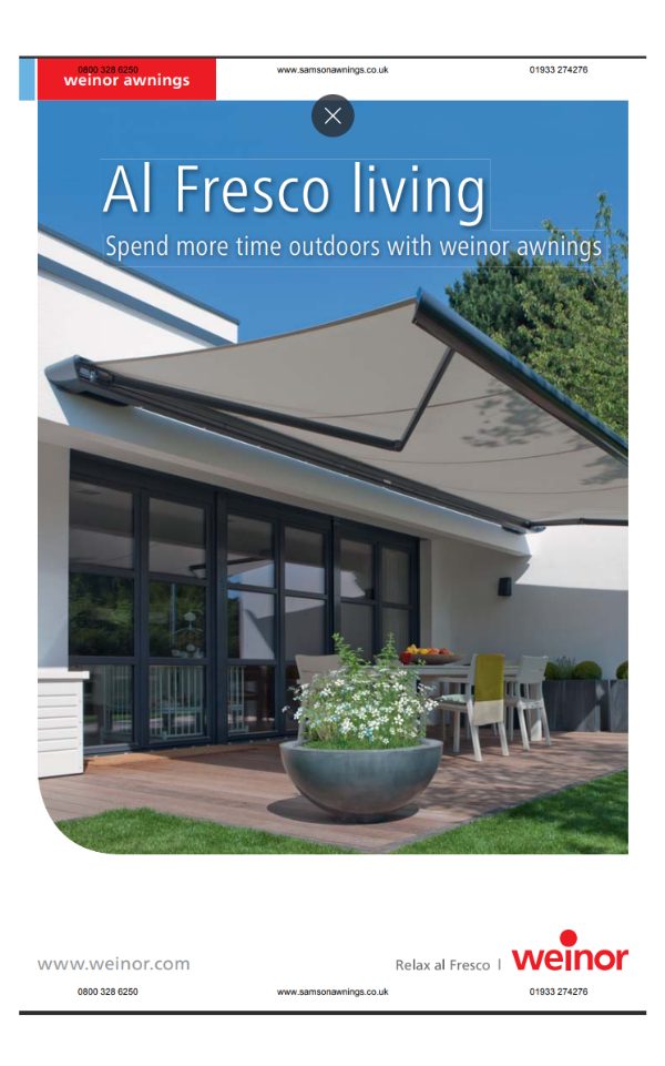 The Weinor Cassita II is available up to a maximum width of 5.5m with a projection of up to three metres. The size of the cassette casing is 22.1cm x 12cm excluding the use of brackets.
