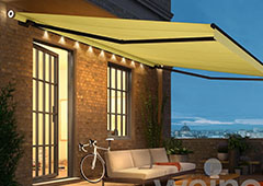 Smart technology forms the backbone of the minimalist design of the open Livona awning. This puristic awning appears to float in the air, with little obstructing your view of all the fabric. LED lighting can also be added at your request in order to create various ambiences. When combined with the frame colour and fabric, the Livona is much more than an attractive balcony or patio awning: it is a modern style element for life alfresco.