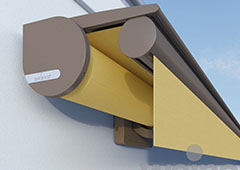 The Weinor Opal Design II is available up to a maximum width of 6.5m with a projection of up to 4m. The size of the cassette casing is 26.5cm x 16cm excluding the use of brackets.