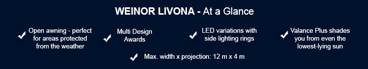 If you place a lot of value on your privacy and also want shade from the low-lying sun, the weinor Livona Valance Plus is exactly what you are looking for.