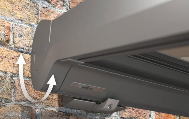 The all-round enclosed and robust awning cassette keeps the fabric and other component parts well protected from the elements.