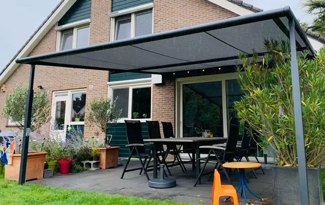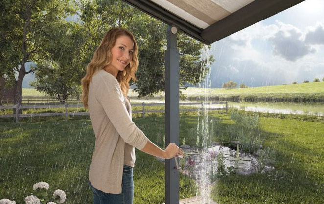 The Plaza Viva textile pergola awning you can now use your patio for even longer with even less worries – virtually regardless of the weather. Whether it’s as sun shading on a sunny day, as extremely stable weather protection with gusty winds or as clever rain protection from warm summer rain, thanks to the Plaza Viva you can enjoy the haven of well-being on your patio without any interruptions.